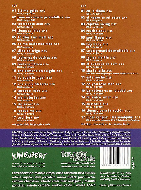 La frase incluida en la portada del recopilatorio lo dice todo: “Un recorrido musical por la vida de este grupo pop-soulero de la Barcelona de los 80 con material inédito y en directo”. Dos CD, pista interactiva y videoclips del grupo… En resumen: impresionante documento sonoro (y visual) de la historia de Kamenbert Gracias a él hemos podido disfrutar de material anteriormente al alcance de algunos pocos privilegiados de la historia del combo mod-soul: 1981 a 1988.