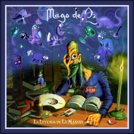 La original portada es de Gaboni, como ocurre con la mayoría de los discos de Mägo de Oz. En ella se muestra a un don Quijote roquero, con una camiseta de AC/DC; lector, con torres de libros y con uno abierto; fumador, con un paquete de tabaco y la bacía por cenicero; cervecero y, sobre todo, soñador, con todas las imágenes sobre su cabeza. En la contraportada se puede ver a un Don Quijote con una guitarra eléctrica Fender al lado de un Sancho Panza poco aseado, con una camiseta de Motörhead bajo una chaqueta de cuero, y con un pendiente y un tatuaje.
