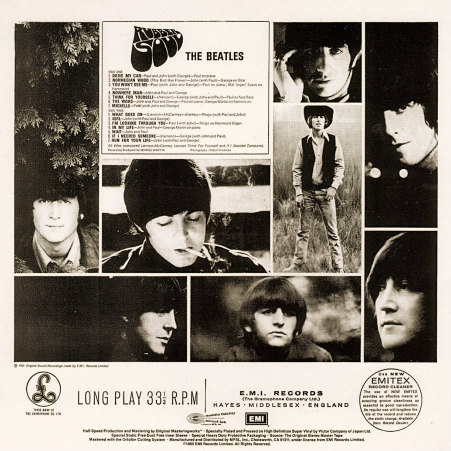 Rubber Soul, es el sexto álbum de estudio de la banda británica de rock The Beatles, lanzado el 3 de diciembre de 1965. Producido por George Martin, fue grabado en sólo cuatro semanas para así poder aprovechar el mercado navideño. A diferencia de sus cinco álbumes anteriores, Rubber Soul fue el primero en ser grabado por sus autores durante un periodo específico concreto, sin ser interrumpido por giras musicales o proyectos fílmicos entre las sesiones de grabación del álbum.9? El álbum fue descrito como un logro artístico importante de la banda, teniendo un amplio éxito comercial y de crítica, y haciendo que los encargados de la reseña tomasen nota de la visión musical que The Beatles iban desarrollando.