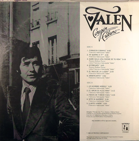 Valen, ha sido el artista que entre las décadas 60 a 90 siempre ha tenido un renacimiento, así en los años ochenta convierte en éxito sus temas Te quiero a ti, “Corazón cubano”, tema éste que arrasó en USA, en especial en la Costa Este, Nueva York, Conneticut, Pensilvania etc, y sobre todo en Miami, Florida.