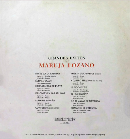 En 1961 firma un contrato con la discográfica Belter, para la que graba su primer EP acompañada por las guitarras de Paquito Simón y Manolo Díaz con coplas como "No se va la paloma [blanca]", "Échale valor", "Herraduras y plata" y "Palomas en las salinas". Tan solo un año más tarde, en 1962, publica su segundo disco y el que recuperamos para hoy acompañada por la Orquesta Belter con el bolero español "La luna y el toro" (siendo ella su verdadera creadora y primera intérprete), el pasodoble "Sierra rondeña", los tientos "Maldita baraja" y el tanguillo "El carro de la taranta". En marzo de ese mismo año, Manolo Escobar le ofrece un contrato y debuta junto a él en el Teatro Cervantes de Madrid con el espectáculo Canto con mis guitarras, todo un éxito de taquilla.