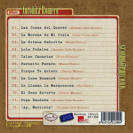 Para la misma discográfica, Antoñita Romero registraría en 1959 las farrucas El berebito, Tani y La Chunga y el pasodoble El Relicario.