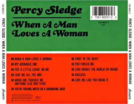 Percy sería el segundo artista que grabó en Norala. “When a man loves a woman” se hizo con los músicos (blancos) que ya estaban dando fama a las producciones de Rick Hall. Jerry Wexler, directivo del sello neoyorquino Atlantic, muy atento a lo que se cocía en el Sur, le fichó y la distribución internacional de Atlantic permitió que la pieza arrasara mundialmente en el verano de 1966.