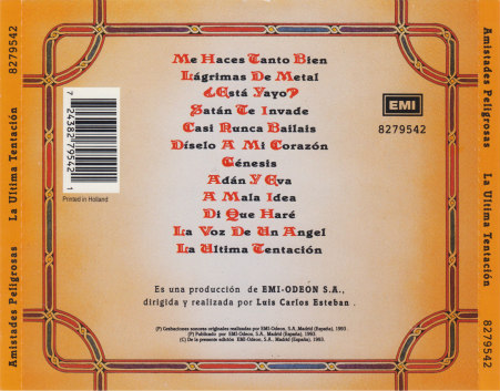 La última tentación es el segundo álbum de Amistades Peligrosas. Fue lanzado al mercado a mediados de 1993 bajo el sello discográfico EMI Music Spain y los llevó nuevamente al número uno en ventas en España, Portugal y en varios países de Latinoamérica. El éxito fue tanto que 350 000 copias fueron vendidas a nivel internacional llevándolos a repetir el éxito de su álbum anterior, Relatos de una intriga, con triple disco de platino en España y disco de oro en México, Colombia, Argentina, Chile y Portugal a pesar de que solo se llegaron a actuar en televisión Argentina.