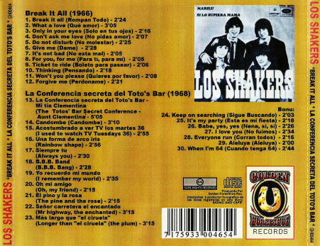 Atraídos por el éxito de "Break it All" lanzan su primer álbum titulado simplemente Los Shakers que también se destaca por la gran calidad de las canciones y su similitud (intencional por supuesto), con las canciones de los primeros discos de The Beatles. Su música iría progresando en nuevas direcciones gracias al importante éxito que tenían en Sudamérica la discografía decide proyectarlos al mercado estadounidense. De esta manera aparece "Break it All" (disco titulado como su primer sencillo), que contenía reversiones de sus canciones más importantes con mejor calidad de sonido y material extra.
