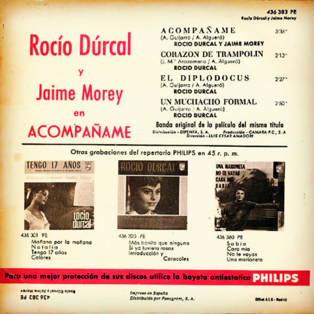En el álbum, las canciones "Acompáñame" y "Canción Canaria" fueron grabadas a dúo con el cantante español Jaime Morey, a diferencia en la película, en la cual fueron interpretados junto a Enrique Guzmán, igualmente, los temas "Tan Cerca" y "Una Muchacha Formal" interpretados por Enrique Guzmán fueron grabadas por Rocío Dúrcal para el álbum.