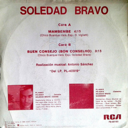 Soledad Bravo 1984 – Mambembe (Single SELLO RCA PB 68180)