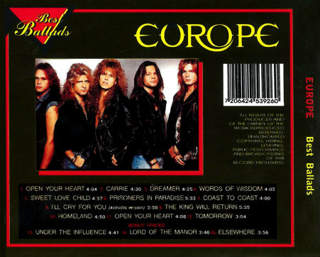 Europe, hicieron su debut discográfico en el sello Hot Records con un álbum homónimo en 1983, al que siguió un segundo álbum titulado Wings of tomorrow (84). Ambos obtuvieron unas ventas medianas. Tony Reno fue despedido por su falta de motivación haciéndose cargo de la batería Ian Haugland (13-8-64) e incorporándose Mic Michaeli (11-11-62, teclados y vocal).