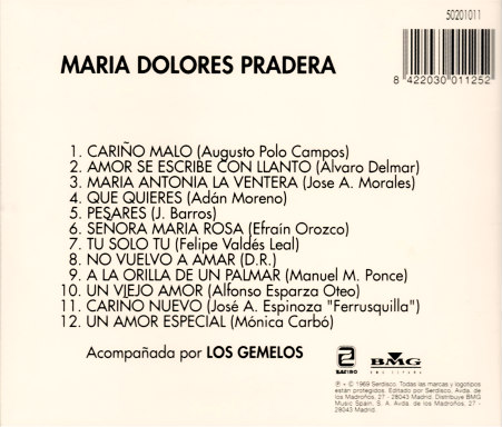 Convertida ya en una gran figura de la canción, María Dolores Pradera cantó temas de Chabuca Granda y de José Alfredo Jiménez. Después de tres años de inactividad, como consecuencia de haber padecido dos graves enfermedades por las que fue internada, en junio de 1987 reapareció en un programa de televisión.