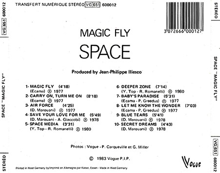 Magic Fly, es el primer álbum de estudio de la banda francesa Space. Fue lanzado en abril de 1977 por Disques Vogue. El álbum alcanzó el número 11 en la lista de álbumes del Reino Unido e incluyó el sencillo del mismo nombre, que había alcanzado el # 2 en el UK Singles Chart.