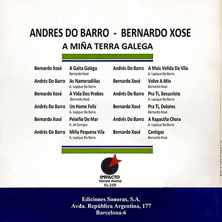 En los años 70 grabó canciones para el productor Belter como: A vida dos probes-O silencio da noite (1970), A gaita galega-Poema (1971), Para tí Dolores-Balada por un sueño (1971), Peixiño do mar-Relembro (1971), Vai para ti- O afiador ( 1972), tengo lo que tengo-The sailor (1972), Cantigas-Ways (1972), Like a empty town-My childhood (1973), Without your love-Bandit (1974).