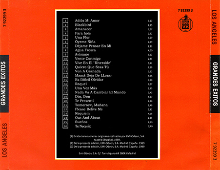 Personalmente, me quedo con éste. Y me quedo con éste porque además de incluir los éxitos de su época dorada (1967-1970), incluye varios temas que nunca habían sido editados en los sencillos del grupo y pertenecían a su raro LP "Los Ángeles" (Hispavox, 1968), muy poco difundido y que condenaba al olvido unas muy buenas versiones de temas de The Beatles, The Turtles o The Kinks realizadas en sus inicios por el cuarteto granadino.