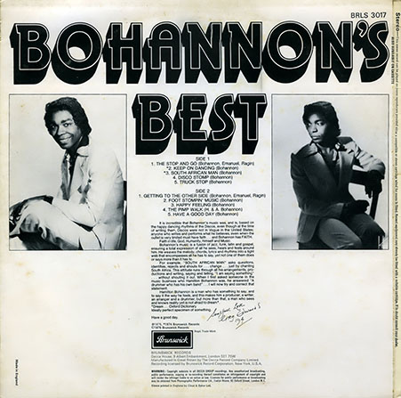Álbumes como “Keep On Dancin’” (74), “Dance Your Ass Off” (76) u “On My Way” (78) están entre lo mejor de su trayectoria. Bohannon estuvo en activo hasta principios de los noventa, cuando decidió apartarse del mundo de la música.