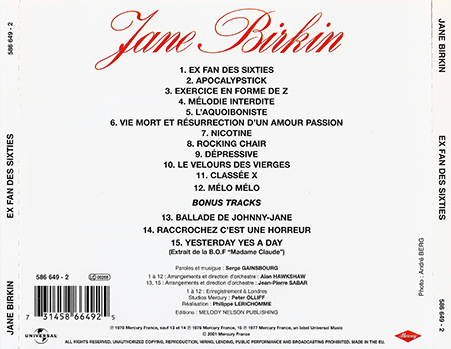 Una de sus primeras colaboraciones con Gainsbourg, la 45 rpm Je t'aime... moi non plus, se convirtió en un éxito internacional y alcanzó el primer lugar en el Reino Unido.