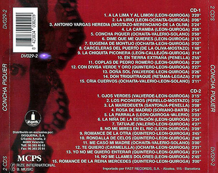 Grabó varios discos con copla aflamencada, muchas veces con orquesta y otros con sólo guitarra. “No voy a entrar en esas grabaciones y me limitaré a señalar que entre ellas hubo una muy popular, titulada ‘Mi perro’, que la gente de mi quinta seguro que recuerda. También grabó cosas estrictamente flamencas, acompañada, por lo general, por dos guitarristas sevillanos: cuando no tocaba Antonio Peana, es porque lo hacía Pepe Martínez. No fue larga en repertorio y los estilos más jondos (tonás, seguiriyas, soleares) ni los tocaba.