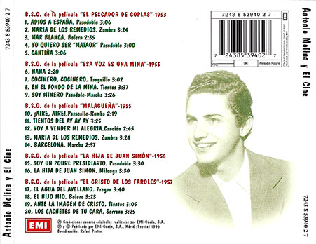 En 1953 protagonizó el largometraje El pescador de coplas, dando vida a un joven marinero al cual un empresario decide apoderar y llevar a Madrid para que triunfe en el mundo del cante. En esta cinta interpretó dos pasodobles que lo situaron en la cima de la popularidad; Yo quiero ser mataor y Adiós a España, la cual se convirtió en la canción del verano en 1954.