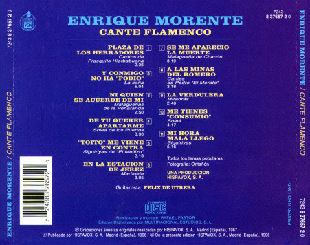 En lo sucesivo, las grabaciones de Morente seguirán mostrando su inquietud cantaora y su vena creativa junto a las guitarras de Niño Ricardo, Perico del Lunar, Parrilla de Jerez, Manzanita, Paco Cortés, Tomatito, Manolo e Isidoro Sanlúcar, Enrique de Melchor, El Bola, Paquete, Montoyita, Sabicas Luis y, sobre todo, Pepe Habichuela.