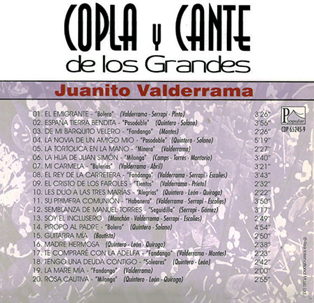 Juanito Valderrama, Juan Valderrama Blanca, más conocido como Juanito Valderrama, (24 de mayo de 1916, Torredelcampo, Jaén – 12 de abril de 2004, Espartinas, Sevilla) fue un cantaor de flamenco español.