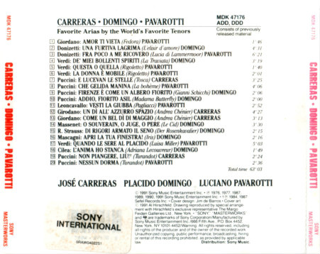 Carreras, Domingo, Pavarotti 1991 - Favorite Arias by the World's Favorite Tenors
