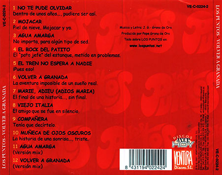 ‘Volver a Granada’ es el título de uno de los discos del grupo musical Los Puntos, formación almeriense que triunfó a finales de los 60 y durante los años 70. El grupo inspiró la mayor parte de sus canciones en la ciudad de Granada.