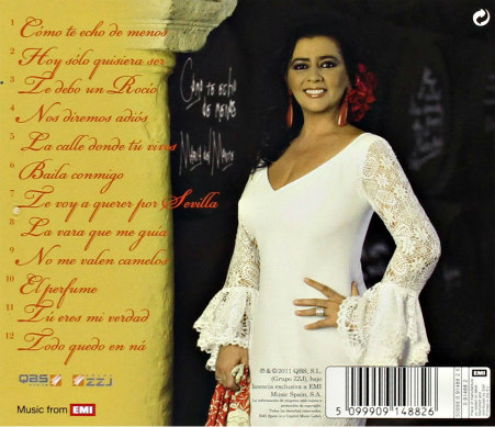 INFO:María del Monte publicó el 29 de noviembre 2011 su nuevo álbum Cómo te echo de menos. Es el regreso de la cantante que más discos de sevillanas ha vendido en el mundo y su nuevo trabajo incluye las siguientes canciones: Cómo te echo de menos, Hoy solo quisiera ser, Te debo un Rocío, Nos diremos adiós, La calle donde tú vives, Baila conmigo, Te voy a querer por Sevilla, La vara que me guía, No me valen camelos, El perfume, Tú eres mi verdad y Todo quedó en na.