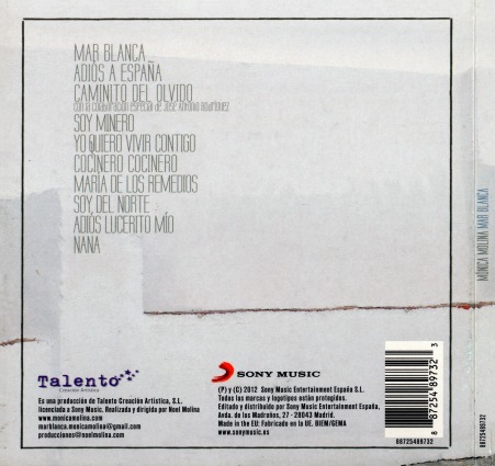 El álbum se abre con Mar blanca, que toma aire de bolero-habanera con cierto tono melancólico y jazz, marcado por la armónica de Antonio Serrano. Adiós a España es un clásico incontestable del repertorio de Antonio Molina, que Mónica recrea transformándola en algo más íntimo, cercano, recogido, enlazando músicas a través del acordeón. Una elegante versión que da paso a Caminito del olvido, con una flamenca introducción interpretada por el gran guitarrista José Antonio Rodríguez y un acercamiento acústico y sofisticado, con un final rumbeado.